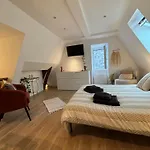 Chez Leo - Rue De La Scellerie Appartement heeft een kleedruimte, voorzien van een bank en een bureau en moderne gemakken zoals TV met satellietzenders en een flatscreen TV met satellietzenders. 1 badkamer met een apart toilet en een douche samen met een haardroger en badlakens wordt aangeboden.